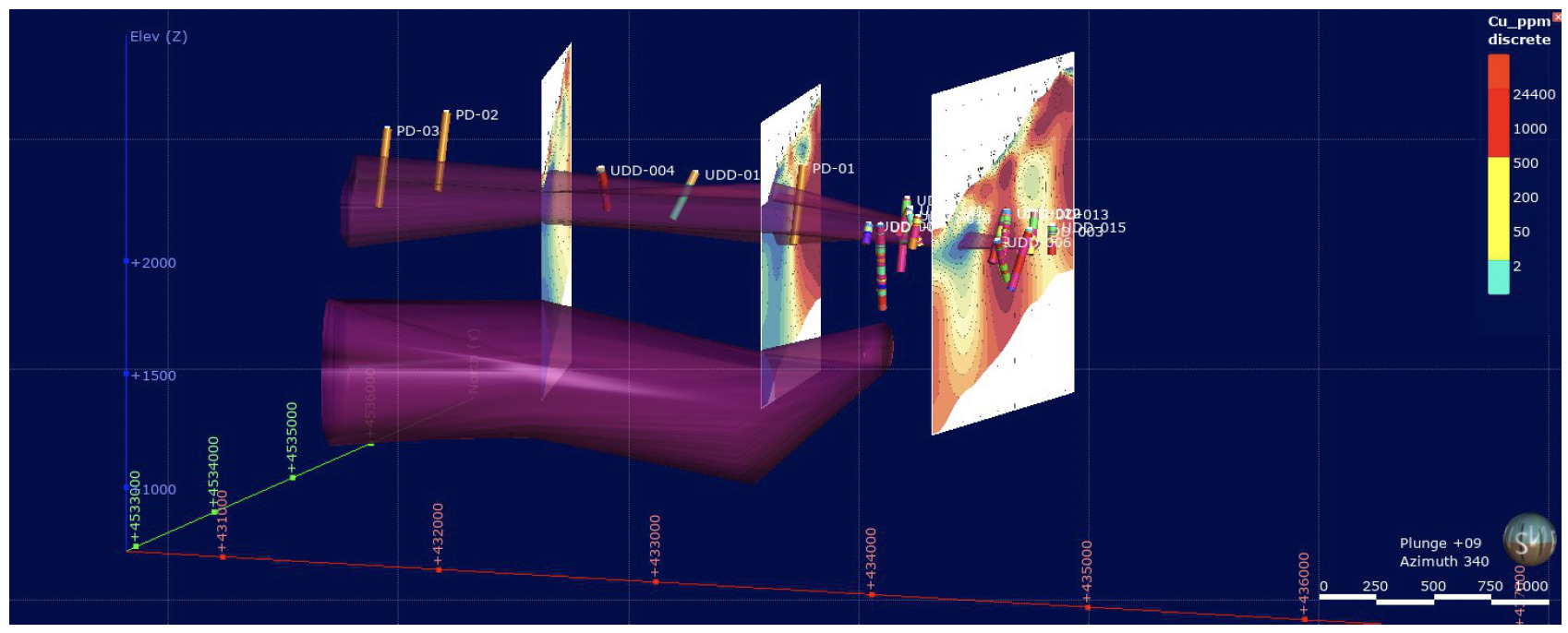 As announced in the Company’s news release on November 12, 2025, a late-season, 500-meter diamond drill hole (UDD-021) was collared in November in the Oxide Basin area, targeting a low resistivity AMT anomaly. Drilling encountered complications at 235m due to intensely faulted and broken ground, combined with the imminent onset of significant winter snowfall, leading to the abandonment of the hole before reaching its target depth. We expect the results of this partially completed hole to be released in the coming weeks.